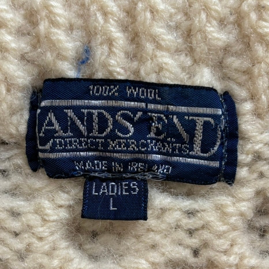 80~90s LANDS'END Ladies Fisherman Knit Made in IRELAND
