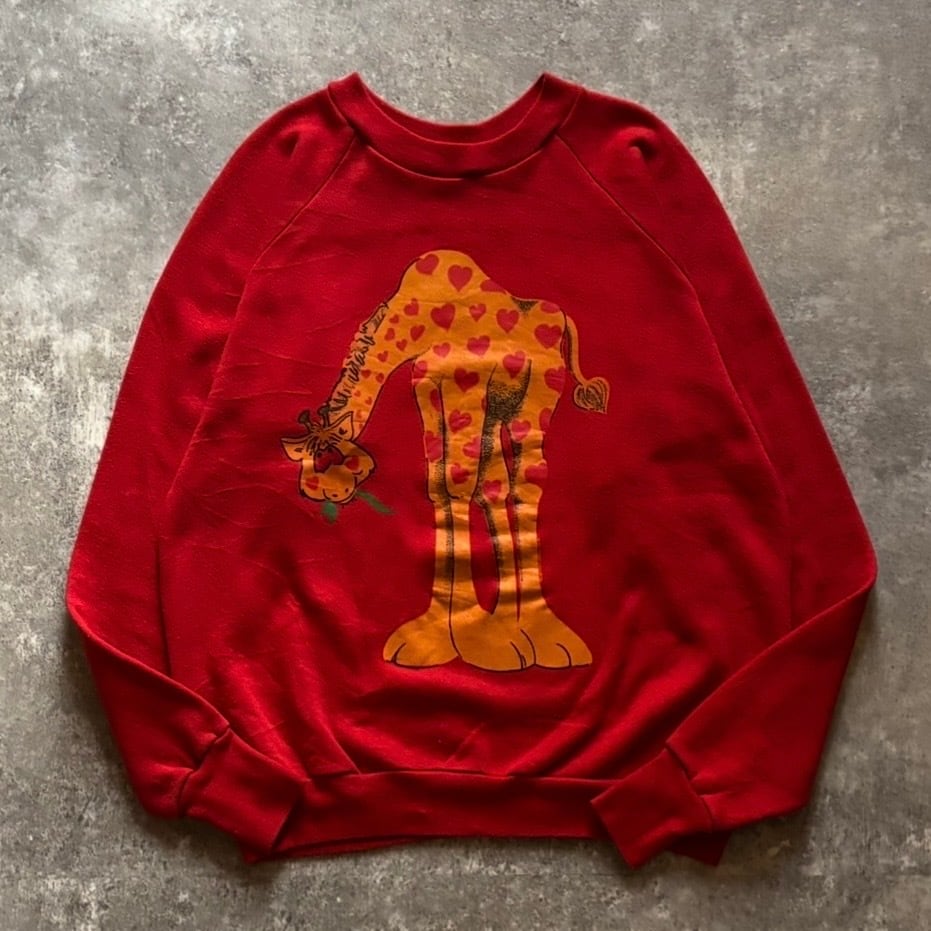 80s Heart Giraffe Print Sweat "Red"